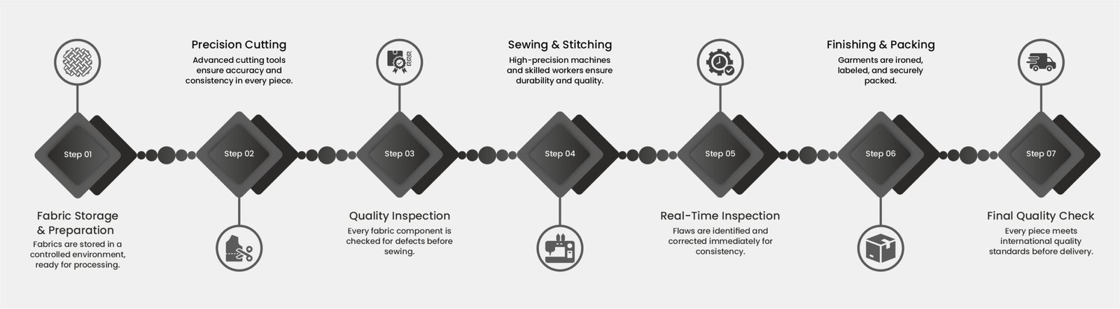 At Ameure, precision meets scale in our two state-of-the-art production units spanning over 10,000 square feet in Delhi – NCR, India. Staffed by a dedicated team of 300 permanent employees, our facilities operate with efficiency, craftsmanship, and care – delivering more than 1.2 million T-shirts annually to partners across global markets.